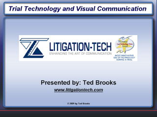 Between computer disasters (yes, I have them too), I've been working on several articles (coming soon), and have a new free CLE program ready, entitled "Trial Technology and Visual Communication." Schedule permitting, I am available to present this to SF Bay Area law firms and other law-related organizations at no charge. A sales pitch is not in keeping with CLE credit, and I will not attempt to take work from in-house litigation support - although I'd be happy to assist when help is needed. Contact me directly (tbrooks@litigationtech.com or 415-291-9900) if you would like additional info. Here are a few preview slides:
